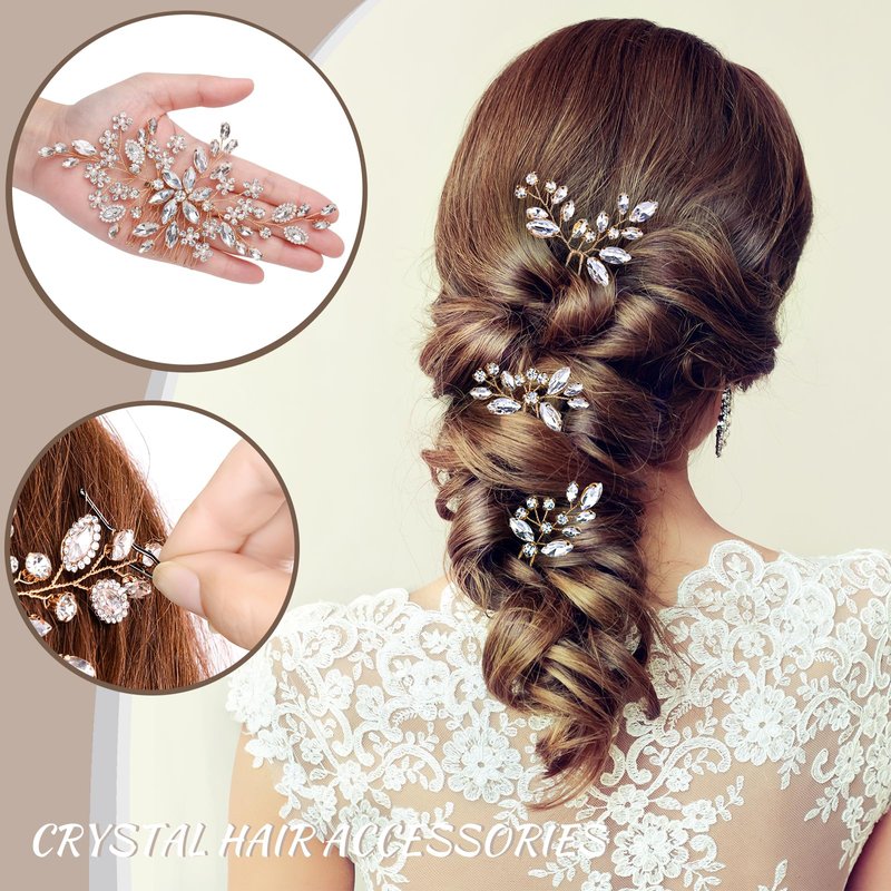 - 【WEDDING HAIR PIEC SETS】This set includes one crystal hair comb and three crystal hairpins. Can be used individually or together as a set, Versatile mix and match. Also includes two hair clips as a gift, which are convenient for securing the hairstyle.