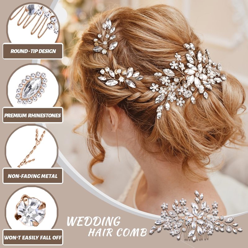 - 【HIGH QUALITY MATERIAL】The hair comb is made of non-fading copper wire, adorned with 155 A-grade rhinestones and 15 pearls. There will be no issues of color fading or stones falling off.The hair comb weighs only 0.06BL and features a rounded head design. It is lightweight and comfortable to wear, without causing any skin irritation.