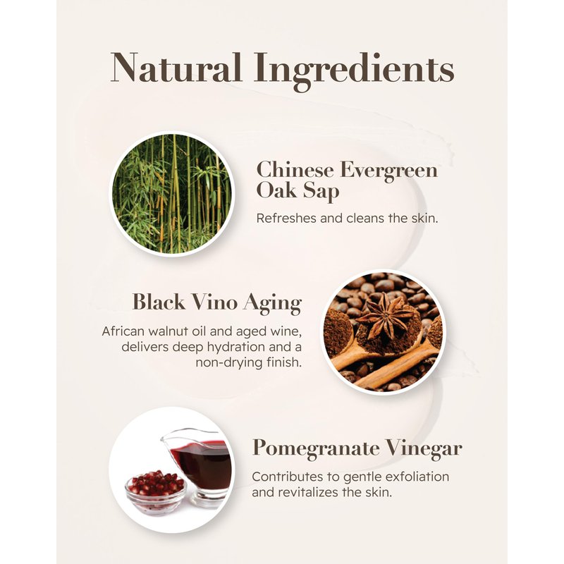 - EXCLUSIVE PLANT-DERIVED INGREDIENTS - The Turnover 28 Advanced Cleansing Line features three essential ingredients. Chinese evergreen oak sap performs the first step of cleansing by refreshing and purifying the skin. Pomegranate vinegar contributes to the second step, gently exfoliating and revitalizing the skin. Black Vino Aging, derived from African walnut oil and aged wine, completes the final step, delivering deep hydration and a non-drying finish.