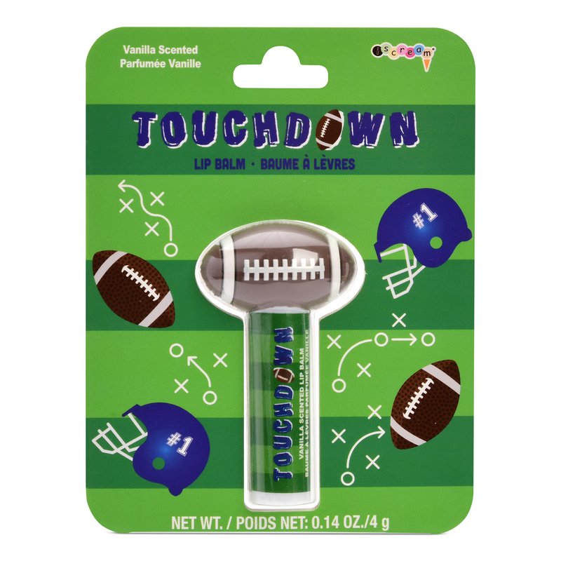 Everyone can use an extra special lip balm on hand for some extra moisture and protection when they need it! Add a fun scent and cool container and they'll be ready for anything that comes their way! This terrific lip balm features a football shaped cap and green container, too. The vanilla scented balm will leave their lips soft and protected from wind and other drying elements! Balm is packaged on a backer card so it is perfect for giving! Tube contains .14 oz of lip balm. The perfect combination of colorful fun, to-die-for design and quintessential quality - just what you expect from iscream!
