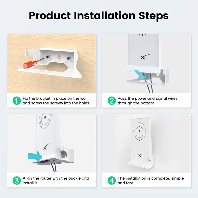 - Easy to install: This wall mount bracket comes with 2 self-tapping screws and 2 expansion bolts, allowing you to easily mount it on any wall in your home. This router stand is lightweight and practical, easy to carry and store.