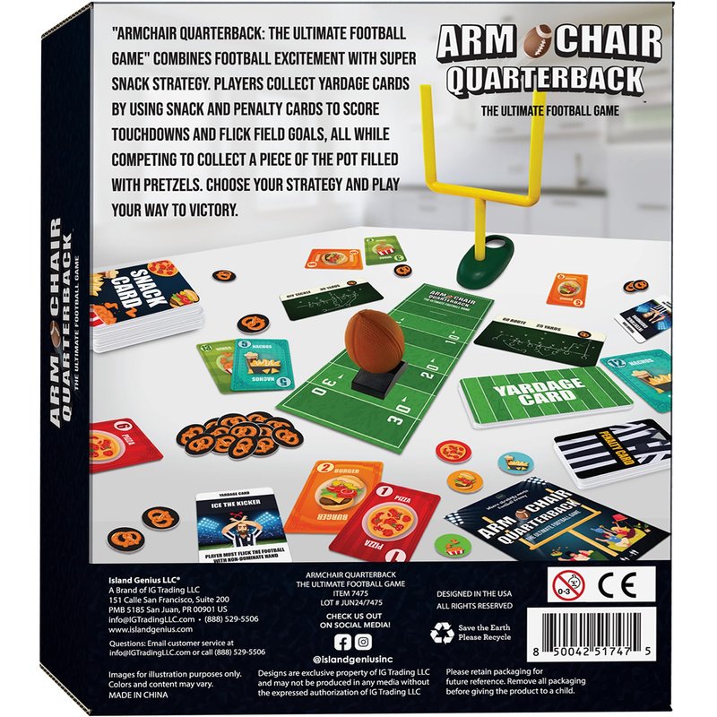 Experience the excitement of game night with Island Genius Armchair Quarterback Football Card Game, the perfect football board game that combines strategic play with a thrilling football-themed experience. Whether you're a die-hard football fan or a casual player, this game offers an interactive and competitive way to enjoy the gridiron spirit with friends and family.