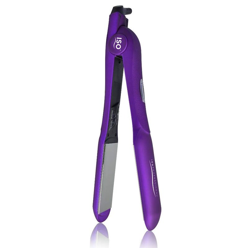 ISO Beauty Gold Collection Metallic Color 1.5 Inch Floating Plates Flat Iron Hair Straightener with Adjustable Auto Power Off, Smart Memory, Temp Control & LCD Display (Purple)