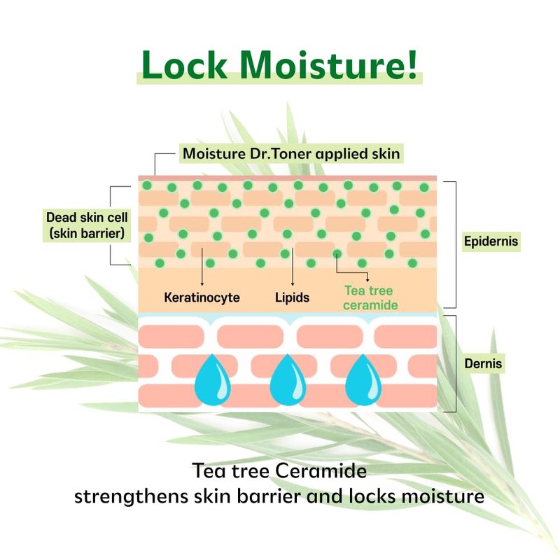 - TEA TREE CERAMIDE FORMULA: Ceramide infused with tea tree, known for its soothing properties, helps the skin quickly absorb moisture, strengthen the skin barrier, and retain hydration for longer