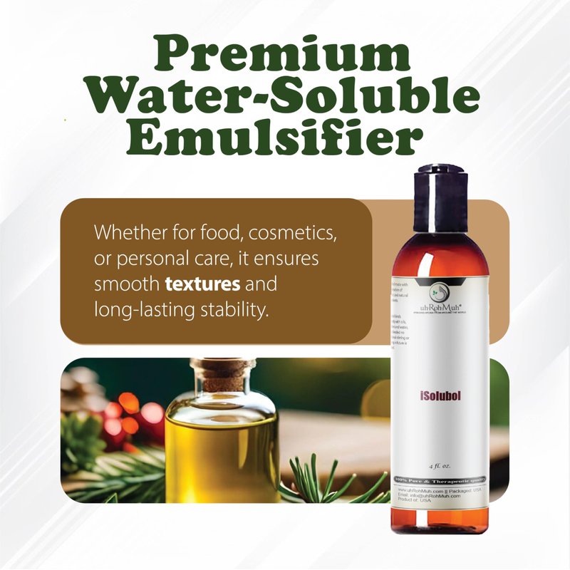 iSolubol Water-Soluble Emulsifier with Polysorbate– Made in The USA – 100% Pure & Natural Ingredients – Perfect for Oil and Water Blends – Cosmetic Formulations & Essential Oil Emulsifier - 4 Fl Oz