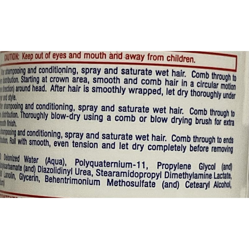 Wrap It: After shampooing and conditioning, spray and saturate wet hair. Comb through to ends for even distribution. Starting at crown area, smooth and comb hair in a circular motion (following one direction) around head. After hair is smoothly wrapped, let dry thoroughly under a hooded dryer and style.