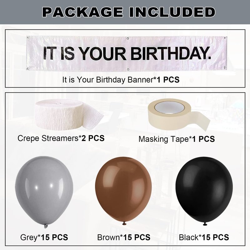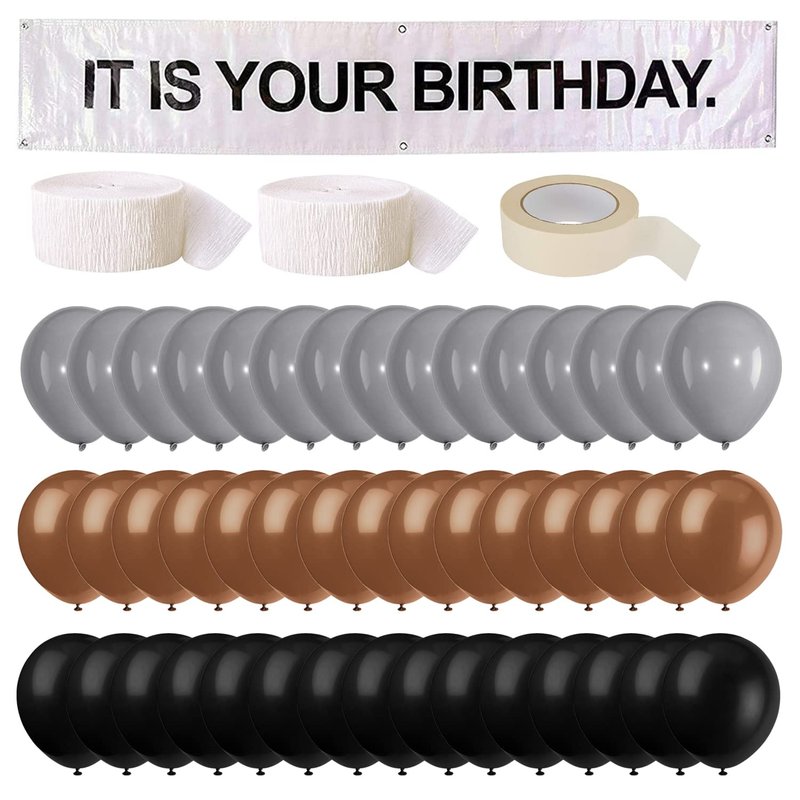 It is Your Birthday Banner, The Office Theme Infamous Husband Birthday Party Decorations,Grey Brown Black Latex Balloons,White Crepe Streamer Rolls + Tape,The Office Birthday Decorations 49Pcs Kit