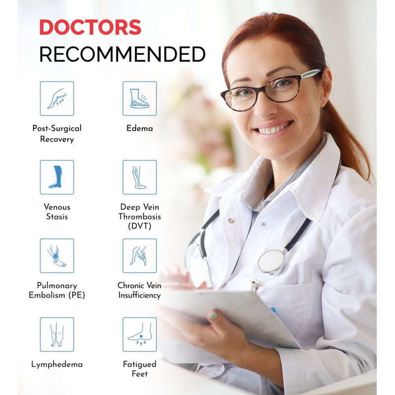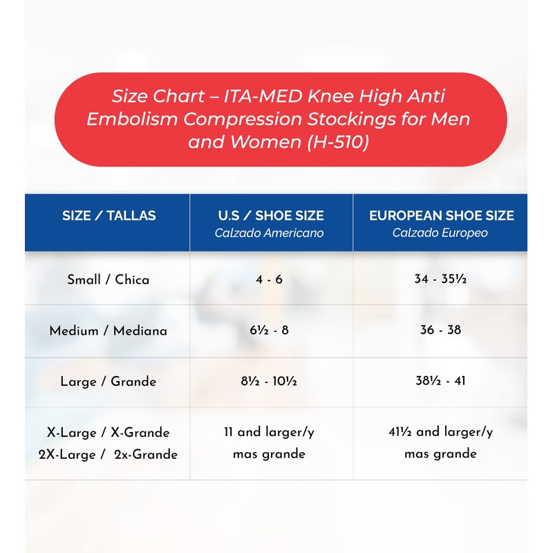 - COMPRESSION FOR INCREASED CIRCULATION - These Anti-Embolism Knee Highs provide therapeutic level compression of 18 mmHg that reduces patient’s risk of pulmonary embolism and blood clots. The light compression stockings reduce swelling, fatigue, cramping and pain in the legs, ankles and feet.