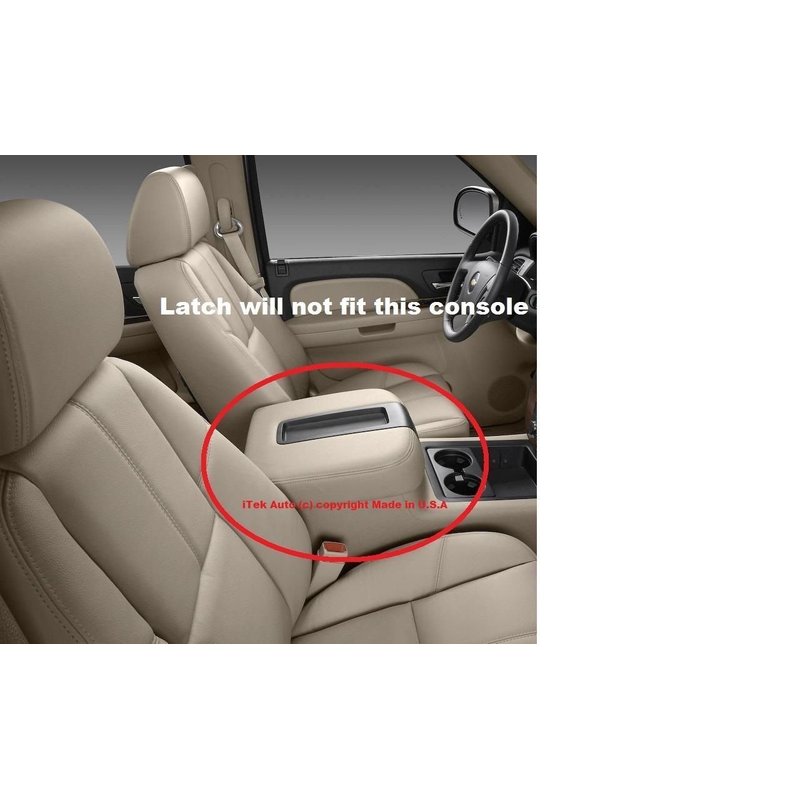 - Please reference pictures posted to ensure fitment. These latches are notorious for breaking over time, Latches are not available thru the dealership. Can only be purchased with the complete lid assembly that costs about 200.00! Must reuse both screws. Lid not included. Will work for 2007-2014 Chevrolet & GMC Make with 40/20/40 split front bench seat