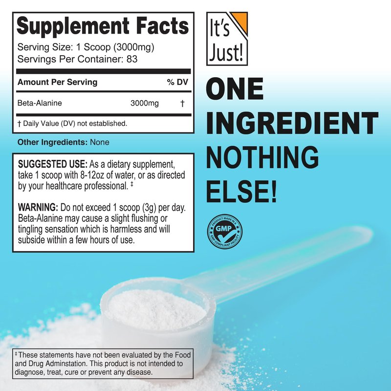 It's Just! - Beta-Alanine Powder, Pre-Workout Supplement, 250g Bulk, Unflavored, 3000mg Per Serving (250g / 83 Servings)