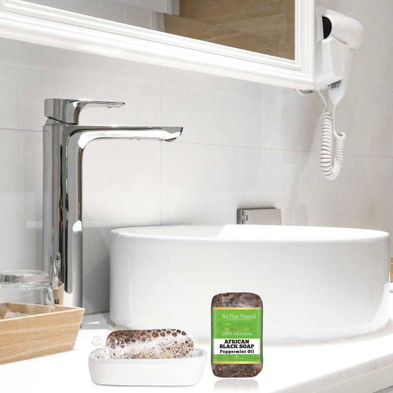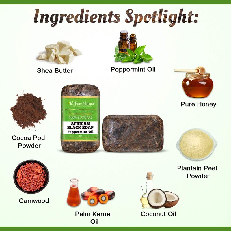 It's Pure Natural African Black Soap Bars with Peppermint Oil (Pack of 3) Organic Raw Soap for Face & Body, Acne Treatment & Dark Spot Remover [Made in Ghana]
