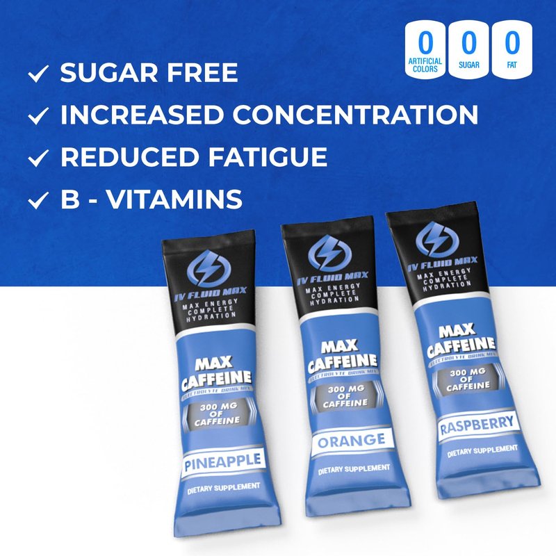 Whether you're an athlete, fitness enthusiast, or just someone who leads an active lifestyle, staying hydrated and properly fueled is crucial to your performance and overall well-being. IV Fluid Max is here to help you take your hydration to the next level with our high caffeine blend. Our electrolyte powder packs are designed to provide you with the essential nutrients your body needs to perform at its best, all in a convenient and delicious on-the-go packet.