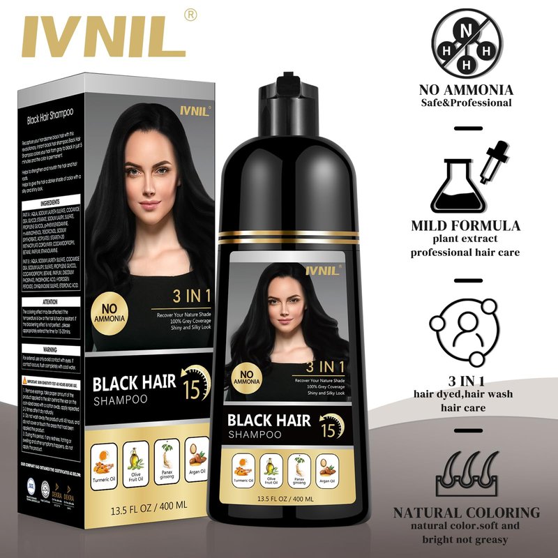Ivnil Black Hair Dye Shampoo Permanent 400ml