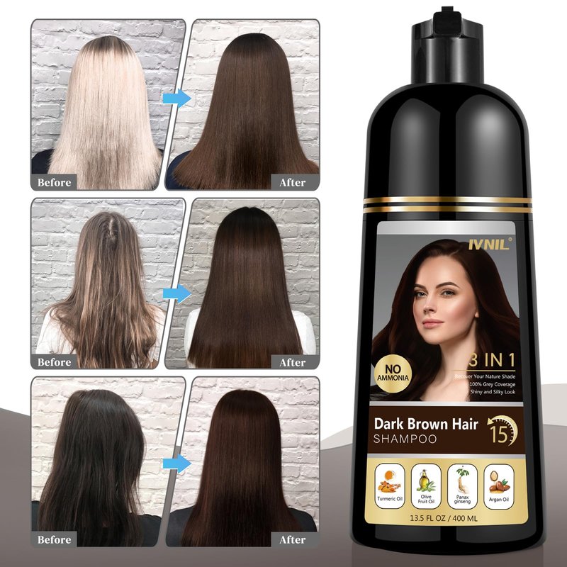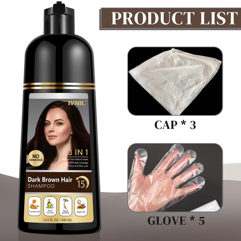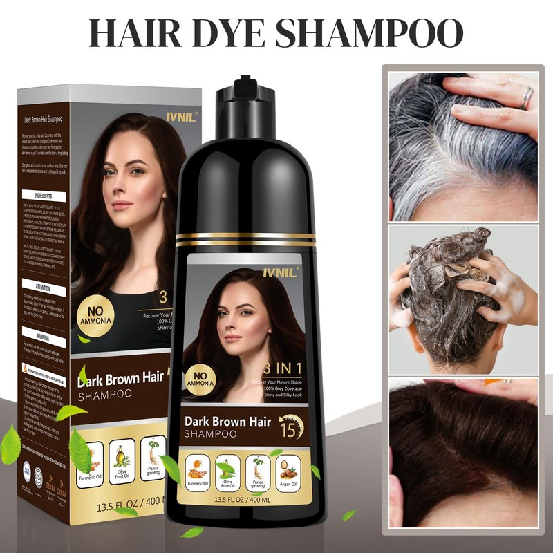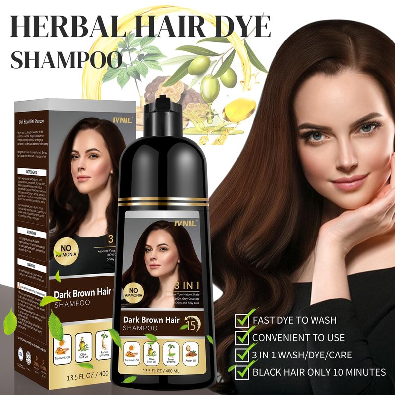 Ivnil Dark Brown Hair Dye Shampoo 3 in 1 Hair Color Shampoo for Gray Coverage Herbal Semi Permanent Champu Para Canas Con Tinte for Women and Men - Instant Result