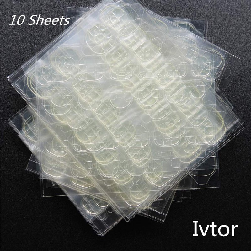 Ivtor 10 Sheets Waterproof Breathable Jelly Double Sided Nail Adhesives,Press on Nails Sticky Tabs Nail Glue Sticker