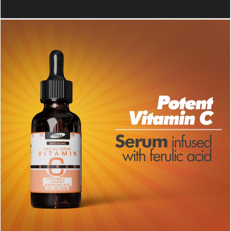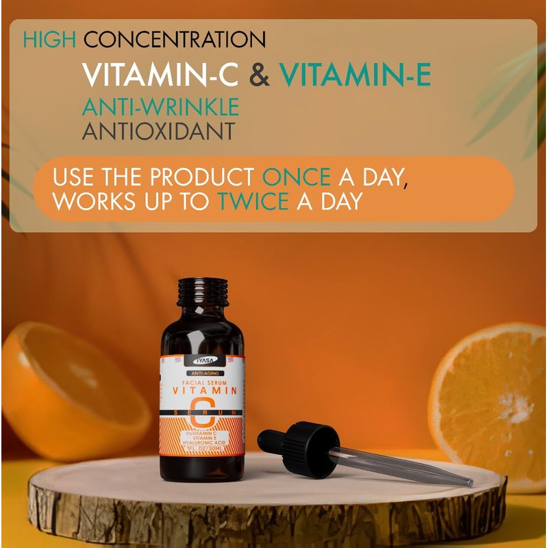 ### IYASA Vitamin C Facial Serum for Anti-Aging, Skin Brightening, and Dark Spot Reduction - 1 fl oz / 30ml **Product Overview:** Welcome to the world of radiant and youthful skin with IYASA Vitamin C Facial Serum, a revolutionary skincare product designed to transform your daily regimen. This serum is meticulously crafted to combat signs of aging, enhance skin brightness, and reduce dark spots, making it an essential addition to your skincare arsenal. Infused with the potent benefits of Vitamin C, Vitamin E, and Hyaluronic Acid, IYASA Vitamin C Facial Serum provides comprehensive care for your skin, ensuring it stays hydrated, protected, and revitalized. **Key Ingredients and Their Benefits:** - **Vitamin C (Sodium Ascorbyl Phosphate):** Vitamin C is renowned for its powerful antioxidant properties, which help to neutralize free radicals and protect the skin from environmental stressors. It is a key ingredient in brightening the complexion and reducing the appearance of dark spots and hyperpigmentation. Sodium Ascorbyl Phosphate, a stable form of Vitamin C, penetrates the skin deeply to promote collagen production, thereby minimizing fine lines and wrinkles. This ensures that your skin looks youthful and radiant over time. - **Vitamin E (Tocopherol):** Vitamin E is another potent antioxidant that complements the action of Vitamin C. It provides additional protection against free radicals and environmental damage. Vitamin E is known for its moisturizing properties, helping to maintain the skin's natural barrier and keeping it hydrated. It also supports skin repair and enhances the effectiveness of sunscreen, making it an invaluable component of the IYASA Vitamin C Facial Serum. - **Hyaluronic Acid:** Hyaluronic Acid is a naturally occurring substance in the skin that has the remarkable ability to retain moisture. It holds up to 1,000 times its weight in water, making it an exceptional hydrating ingredient. This powerful humectant helps to plump the skin, reduce the appearance of fine lines and wrinkles, and provide a smooth and supple texture. By incorporating Hyaluronic Acid, the IYASA Vitamin C Facial Serum ensures that your skin remains deeply moisturized and looks fresh throughout the day. - **Organic Aloe Barbadensis Leaf Extract:** Aloe Vera is known for its soothing and healing properties. It calms irritated skin, reduces redness, and provides a cooling effect. The Organic Aloe Barbadensis Leaf Extract in our serum helps to keep the skin calm and comfortable, making it suitable for all skin types, including sensitive skin. - **MSM (Methylsulfonylmethane):** MSM is a sulfur compound that supports collagen production and promotes overall skin health. It helps to improve the skin's firmness and elasticity, reducing the appearance of sagging skin and fine lines. MSM also has anti-inflammatory properties, which help to soothe and calm the skin. - **Botanical Hyaluronic Acid:** Derived from plant sources, Botanical Hyaluronic Acid provides natural hydration and moisture retention. It works synergistically with the Hyaluronic Acid in the serum to enhance its hydrating effects and keep the skin plump and hydrated. - **Witch Hazel:** Witch Hazel is a natural astringent that helps to tighten the skin and reduce the appearance of pores. It also has anti-inflammatory and antioxidant properties, making it beneficial for acne-prone skin. Witch Hazel helps to control excess oil production and keep the skin clear and balanced. - **Ferulic Acid:** Ferulic Acid is a powerful antioxidant that boosts the effectiveness of other antioxidants like Vitamin C and Vitamin E. It helps to protect the skin from environmental damage and reduce the signs of aging. Ferulic Acid also has anti-inflammatory properties, which help to calm and soothe the skin. - **Organic Jojoba Oil:** Jojoba Oil is a lightweight and non-comedogenic oil that closely resembles the natural sebum produced by the skin. It helps to balance oil production, hydrate the skin, and provide a smooth and supple texture. Jojoba Oil is rich in vitamins and minerals that nourish and protect the skin. - **Organic Gotu Kola Extract:** Gotu Kola is an herb known for its skin-rejuvenating properties. It helps to stimulate collagen production, improve skin elasticity, and reduce the appearance of scars and stretch marks. Gotu Kola also has anti-inflammatory properties, which help to soothe and calm the skin. - **Organic Dandelion Extract:** Dandelion Extract is rich in antioxidants and vitamins that help to detoxify and brighten the skin. It helps to reduce the appearance of dark spots and hyperpigmentation, giving the skin a more even tone. Dandelion Extract also has anti-inflammatory properties, which help to calm and soothe the skin. - **Organic Geranium Extract:** Geranium Extract is known for its astringent and anti-inflammatory properties. It helps to tighten the skin, reduce the appearance of pores, and balance oil production. Geranium Extract also has a pleasant floral scent that adds a refreshing touch to the serum. **Key Benefits of IYASA Vitamin C Facial Serum:** 1. **Anti-Aging:** The IYASA Vitamin C Facial Serum is specifically formulated to target and reduce the signs of aging. The combination of Vitamin C, Vitamin E, and Hyaluronic Acid works synergistically to minimize the appearance of fine lines and wrinkles, promoting a youthful and radiant complexion. Regular use of this serum helps to improve skin elasticity, making your skin look firmer and more youthful. 2. **Brightening:** One of the standout features of this serum is its ability to brighten the skin. Vitamin C is known for its brightening properties, helping to even out skin tone and reduce the appearance of dark spots and hyperpigmentation. With consistent use, your complexion will become more radiant and luminous. 3. **Dark Spot Reduction:** Dark spots and hyperpigmentation can be a common concern for many individuals. The IYASA Vitamin C Facial Serum addresses this issue by f