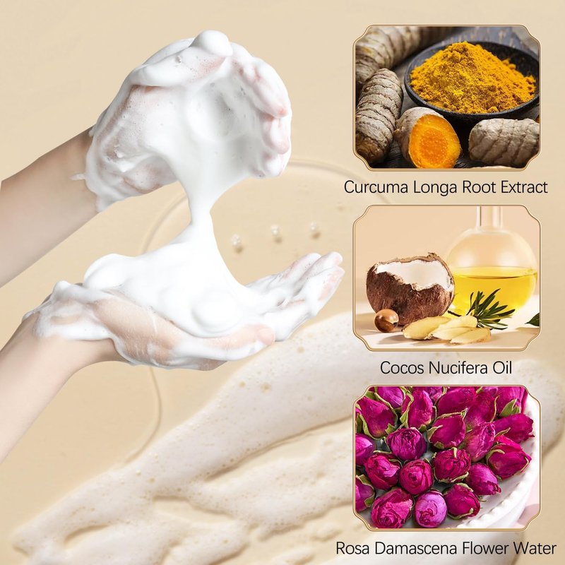 - 【Turmeric Face Wash】- Our Turmeric Facial Cleanser is enriched with natural ingredients, including turmeric, to deeply nourish and defend your skin.