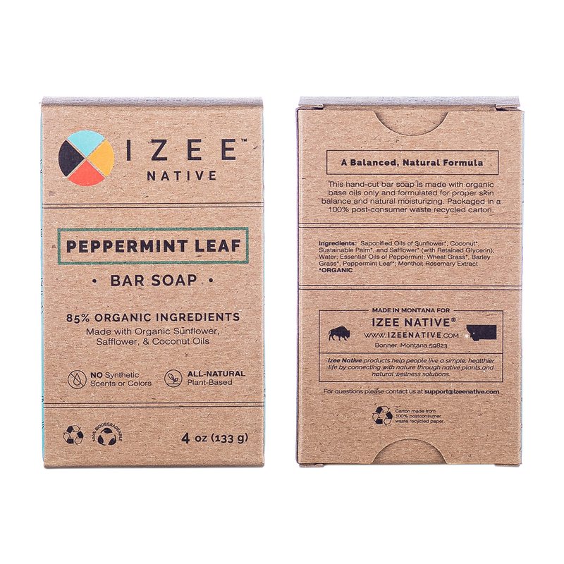 Izee Native Peppermint Leaf Botanical Bar Soap 1 count 4oz Peppermint Leaf Bar Soap | Earth-Safe Biodegradable Bar Soap Made in USA With Natural and Organic Ingredients