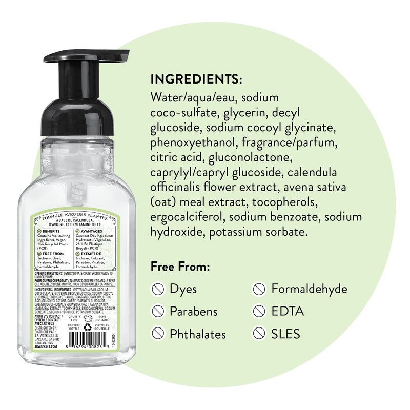 Formulated with Plants Estd 1868 Remedies For Body Made with Calendula, Oat, Vitamins D & E Leaping Bunny Certified J.R Watkins Apothecary Trusted, High-Quality Formulas Since 1868 Free From Triclosan, Dyes, Parabens, Phthalates, Formaldehyde