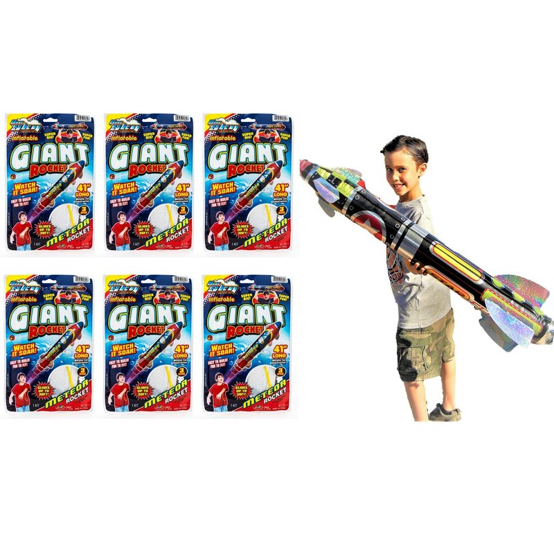 The bigger the rocket the greater the fun because the Giant Rocket is 41 inches long and soars through the air! It's easy to build and easy to fly. Your child will have a blast. Imagine the face of your child when they fly this huge rocket. The sky is the limit! They will learn the wonders of aerodynamics while having an awesome time. Includes 6 Giant Rocket for a great value.
