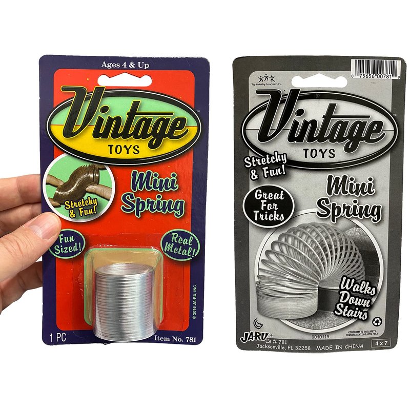 - 2 Individual Pack of Vintage Toys Mini Metal Spring -Each spring is 1.5 inch in size. Classic retro & novelty old school toys for kids and adult. Stretch, bend, and fidget to create a variety of shapes and patterns. Super spring-y and slingy simple coil fidget toys. Plus 1 FunaTon Sticker.