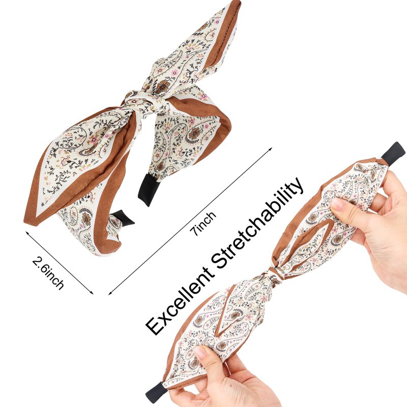 - Bandana Headband: Classic paisley knotted headband with bow. These bandana headbands are stretchable and smooth to touch, it can help you maintain your hairstyle without hurting your hair.