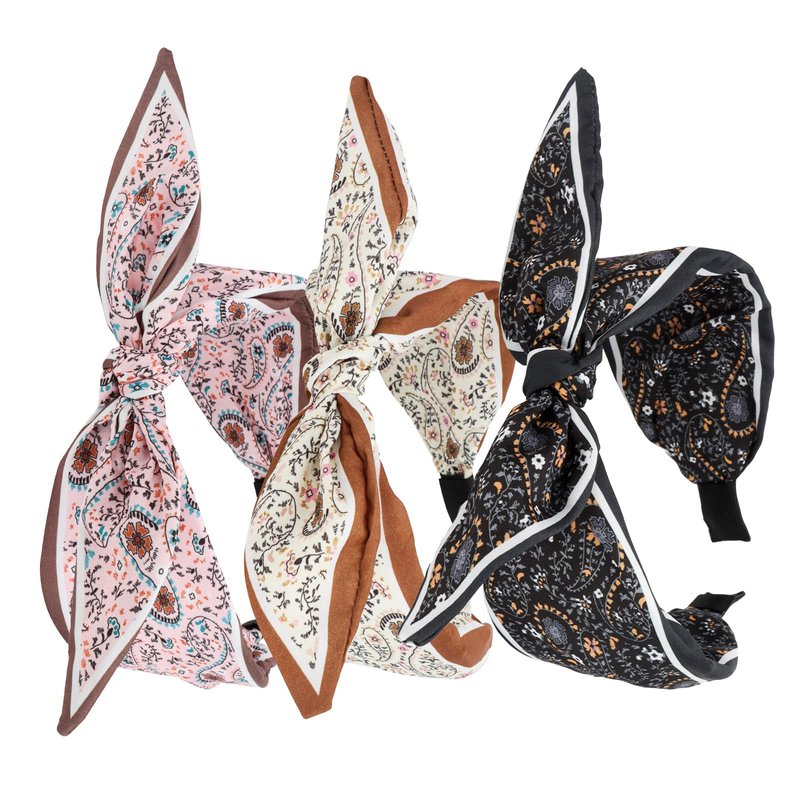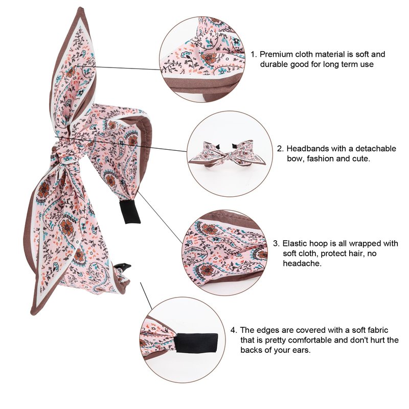 - Bunny Ears Headband: 3 packs bandana headbands for women girls, black, brown beige, pink headband. Delicate bandana headbands in a variety of colors, giving you more options to match your different outfits.
