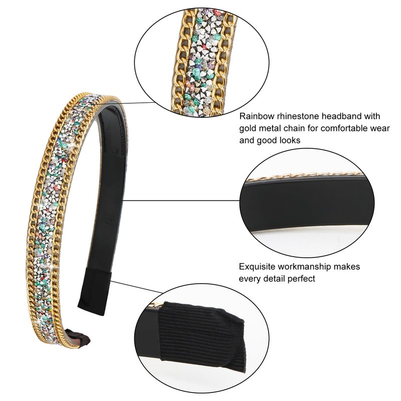 - Dazzling Design: Be the center of attention with our rainbow rhinestone headband with gold chain, perfect for weddings, proms, parties, birthdays, daily wear and special occasions. The delicate details and chic feel will make you a glorious star.