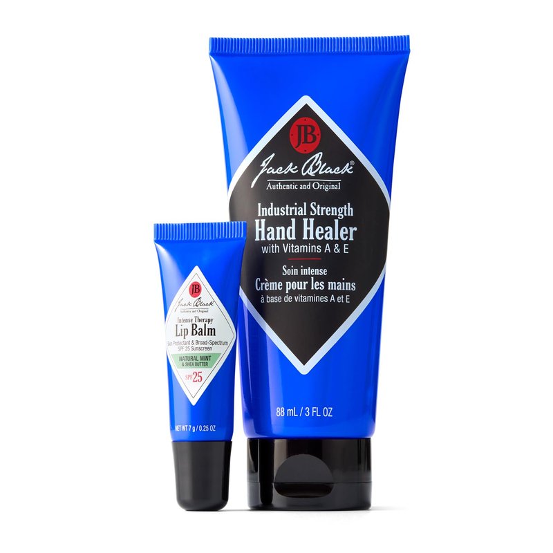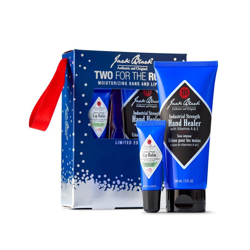 Jack Black Two For The Road Gift Set – Industrial Strength Hand Healer with Vitamins A & E and Natural Mint Intense Therapy Lip Balm with SPF 25 Sun Protection
