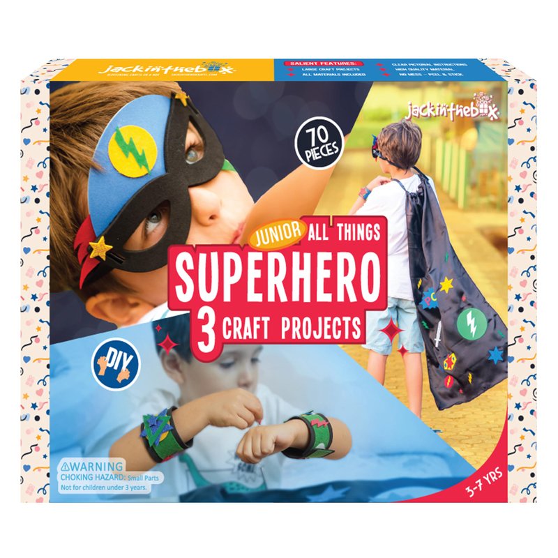 jackinthebox Superhero DIY Costume Art and Craft Kit, Make a Cape, Mask and Cuffs, Best Gift for Boys Ages 5 6 7 8 Years, 3 Craft Projects in 1 Box