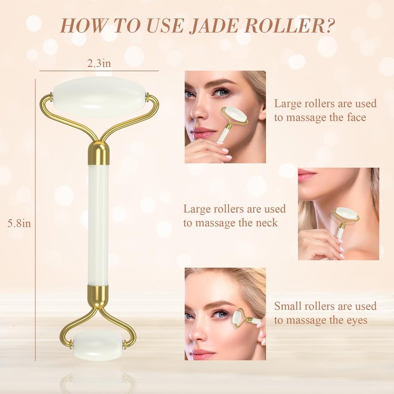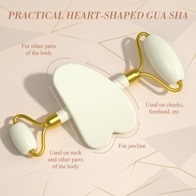Jade Roller Gua Sha Set - Facial Skin Care Set, Facial Beauty Tools, Natural Beauty Skin Care Tools, Face Roller Massager for Face, Neck, and Eye Treatment (White)