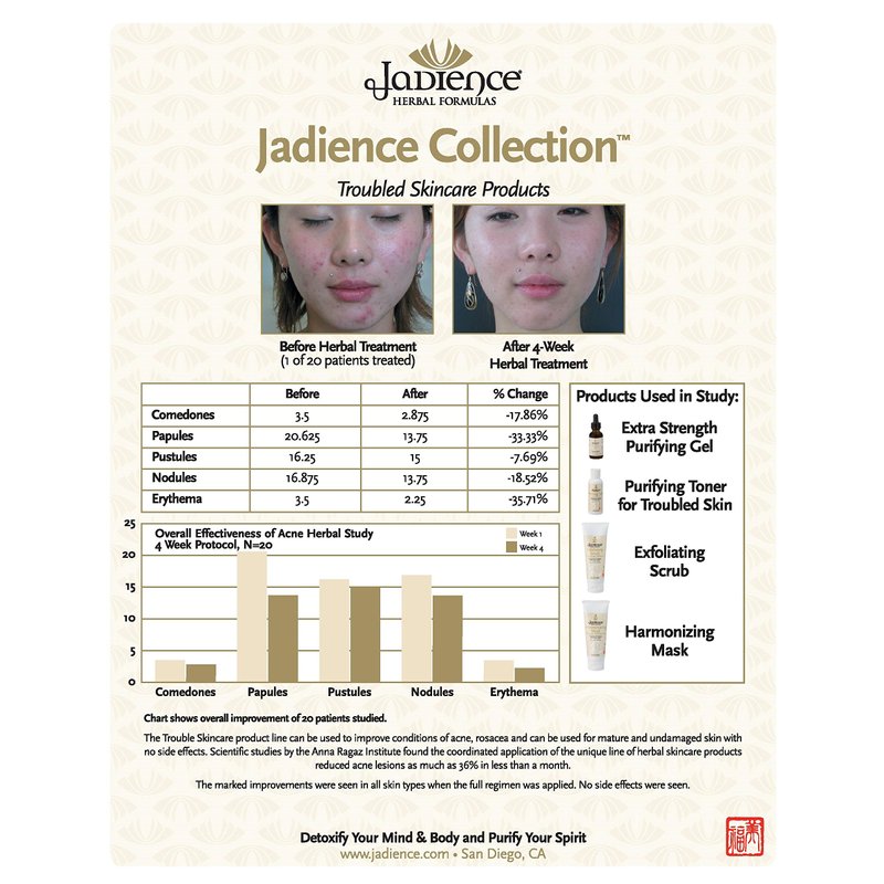 To make an even bigger impact on the health of your skin, you may also want to order the Jadience Cleansing Cream (Normal to Oily), Exfoliating Scrub, Purifying Toner for Troubled Skin, Harmonizing Clay Mask and Purifying Gel. With a collection of Jadience products, you’ll have your own personal spa experience at home!