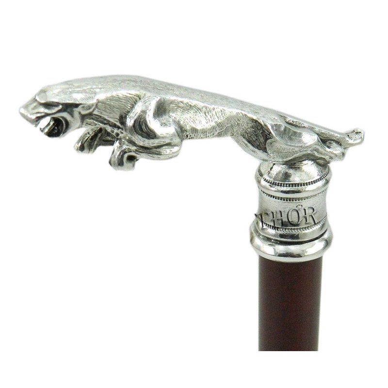Jaguar Head Handle Victorian Look Wooden Walking Stick Vintage Cane