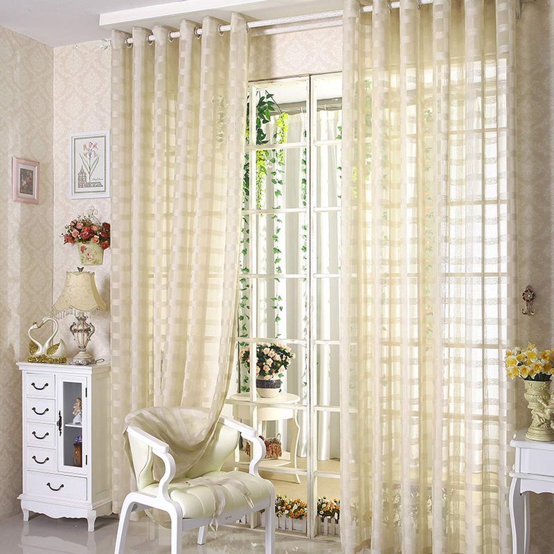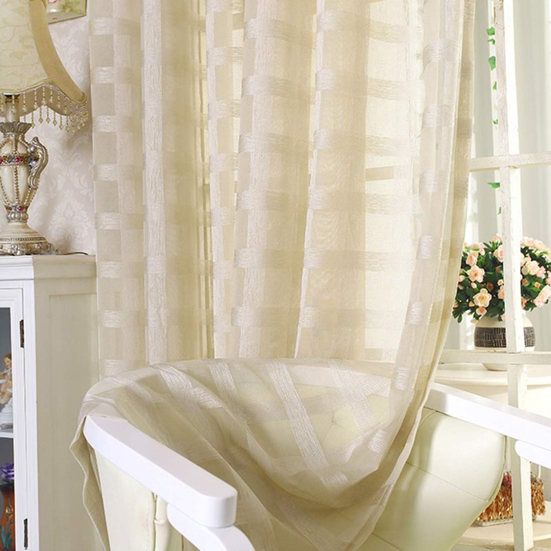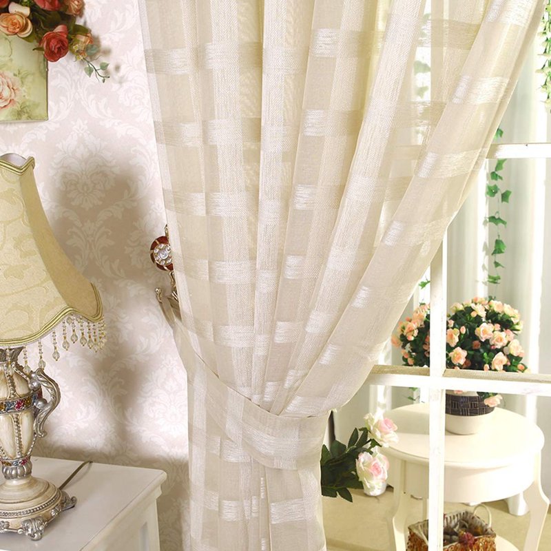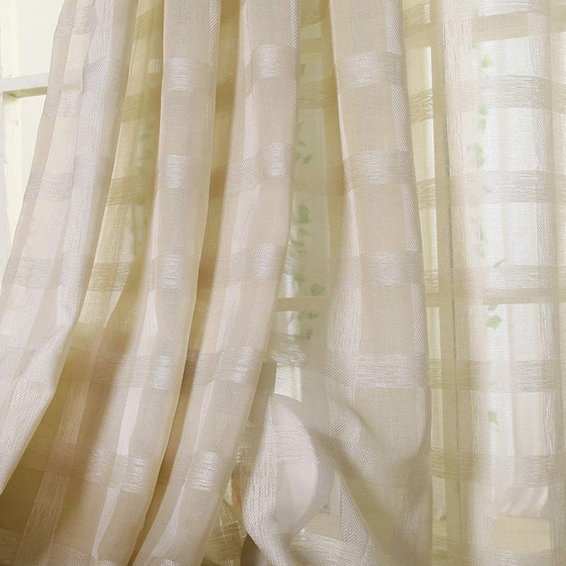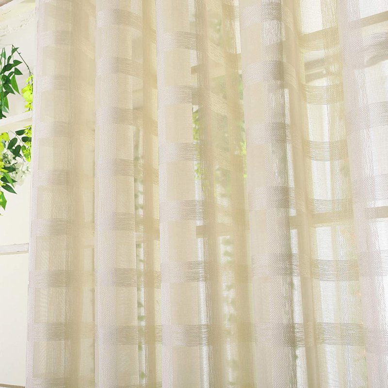JAIJY 78" Volie Semi Screen 2Pc Tulle Backdrop Curtains Buffalo Check Striped Gingham Sheer Linen Fabric Window Curtain Panel Decorative Grommet Top Bedroom Drapes, 2 Panels, 78 inch Length, Beige