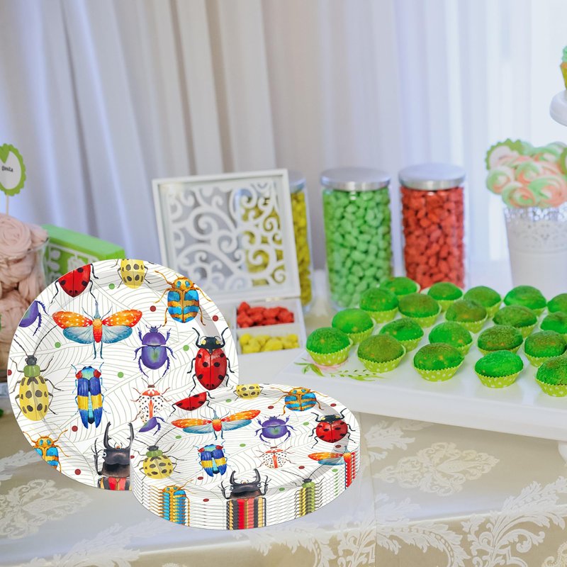 - Bring a burst of color and a dash of whimsy to your next celebration with our 7-inch Bug-Themed Paper Plates, featuring a delightful array of insects that will captivate the imagination of children and adults alike.