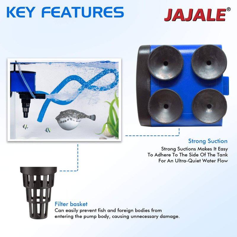- The filter basket can easily prevent fish and other things from entering the pump body, causing unexpected damage.