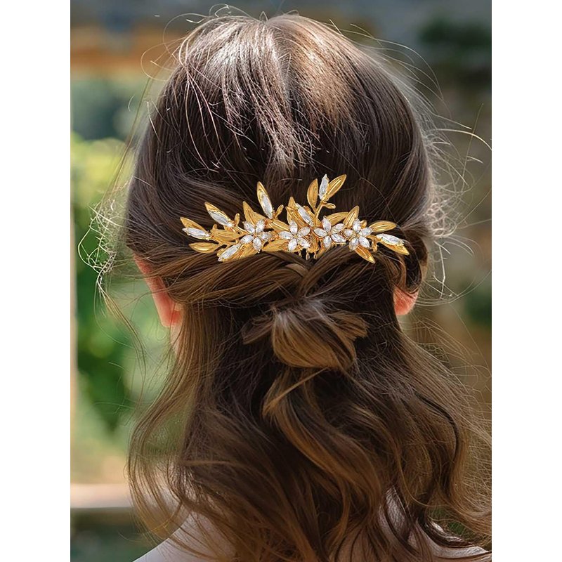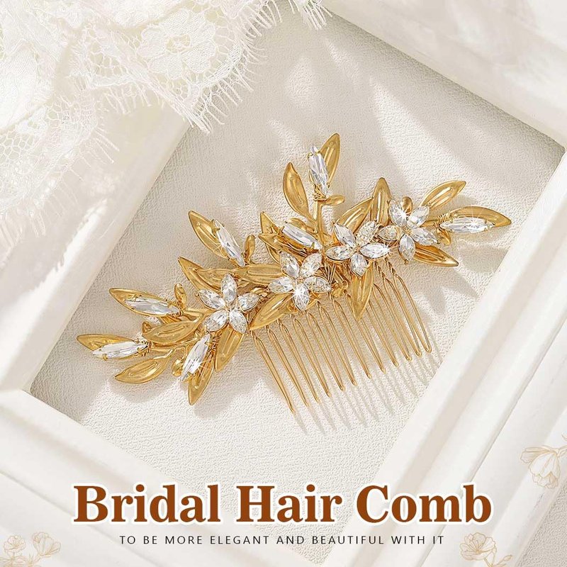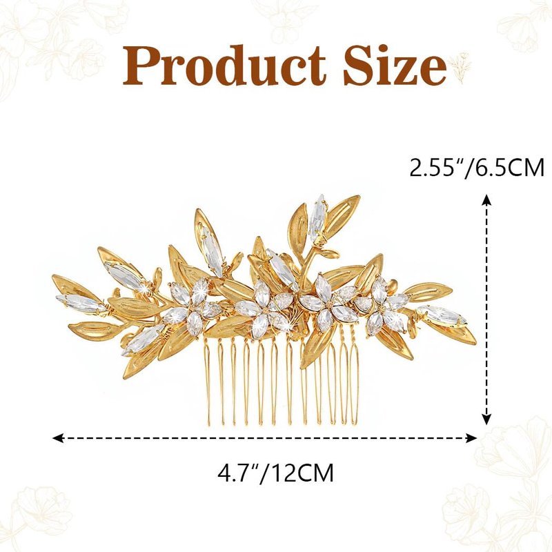 Bridal hair comb is gold and made of durable alloy metal. Gold Flower hair piece is easy to wear and stay stable and suitable for wedding, engagement, costume, prom, and other occasion. Bridesmaid hair accessories will be a lovely gift for brides,bridesmaids,flower girl, or your loved one.