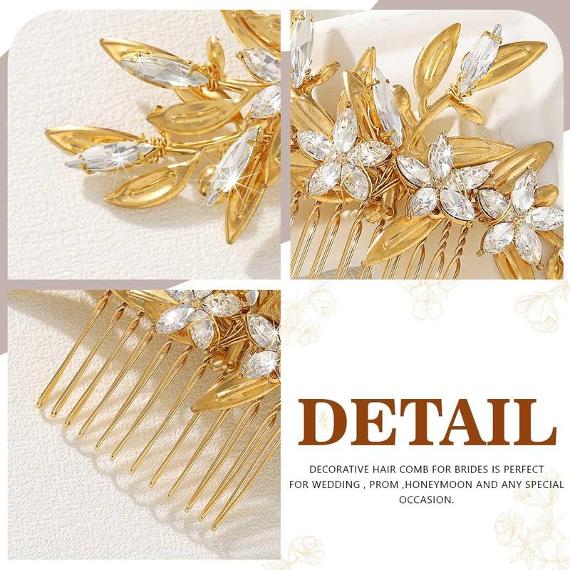 - Bridal hair comb is gold and made of durable alloy metal.