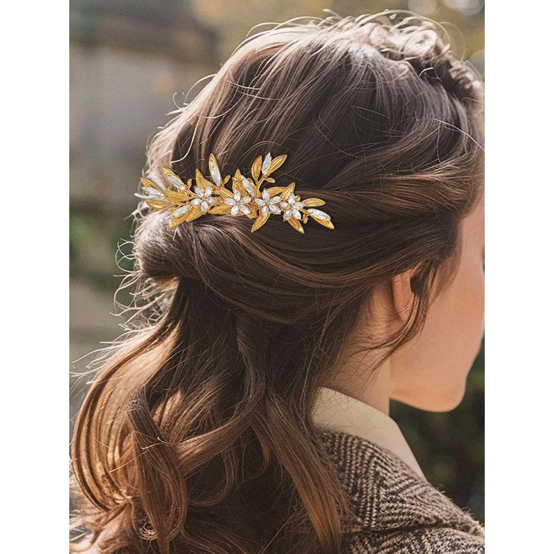 JAKAWIN Crystal Wedding Hair Comb Gold Flower Hair Piece Bride Accessories For Women Bridal Decorative
