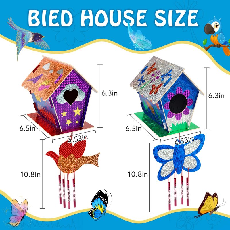 Jamboa Kids Crafts for Ages 6-14, 2 Pack Montessori Bird House/Foil/Wind Chime/Stickers, Genius Designer DIY Birdhouse Wooden Art Set, Idea Birthday for Girl Boy Children 6 7 8 9 10 Year Old