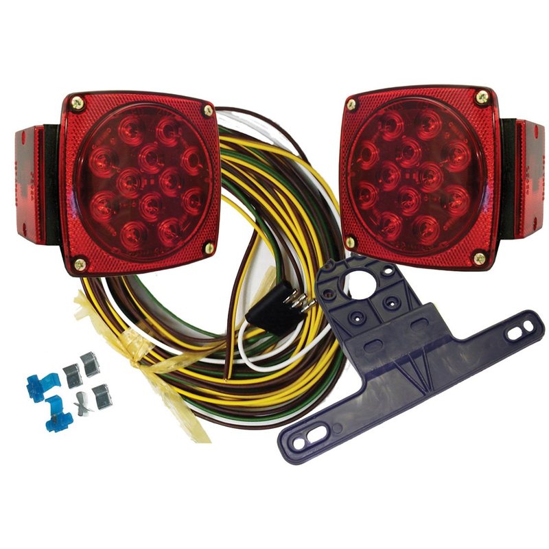 LED Waterproof Rear Lighting Kit for Under 80" Wide Trailers & Boat Trailers. Submersible tail lights have stainless hardware, gasketed lenses and 48" pre-attached leads for use on regular trailers and marine boat trailers. Curbside (right) lamp has 14 Diodes. Streetside (left) light has 18 diodes, including license lamp diodes. 2-Bolt industry standard mounting for easy replacement or upgrade. Meets all DOT standards for rear lighting and reflectivity on Under 80" Wide trailers.