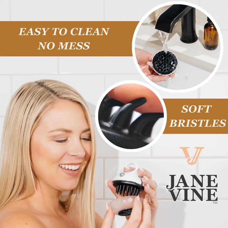 The Jane Vine Brand is inspired by the most beautiful woman on earth… You! You are probably already using hair growth oils to help with hair growth or hair loss. This hair oil applicator creates perfect little drops of oil that will evenly disperse across your scalp to not only help you to save product but also ensure this oil applicator is precise. You’ll love the head scalp massager feature, you don’t only have to use it as a hair oiler! You can use it as a scalp massager shower, especially to scrub your scalp. Many people are looking for a scalp massager hair growth stimulator in one! You’ll get your hair oil dispenser and head massages scalp at the same time! Using a scalp stimulator tool is incredibly effective for hair growth and when combined with the hair oil applicator for scalp feature - you will see results even faster. We designed this applicator brush to work with most oils, if your hair growth oil is too thick (such as castor oil) you can mix it with rosemary hair oil or other thinner hair oils for hair growth and thickness. Because this hair oil massager was designed to also be the best scalp massager - we don’t recommend you store oils inside of our hair oil comb. If you’re struggling with traditional droppers not working as a precision oiler, this scalp massager hair growth oil will be an absolute game changer to your hair care routine. Hair brushes and traditional head scrubbers just can’t do what the Jane Vine Scalp Oil Applicator does for those using scalp treatment, hair growth oil and rosemary oil for hair growth. Many of our customers are looking for dandruff treatment, itchy scalp treatment, psoriasis scalp treatment, and alopecia hair growth products. Luckily the Jane Vine hair oiling applicator can help with all of these conditions. Please give our Scalp Scrubber + Scalp Oil Applicator a try!