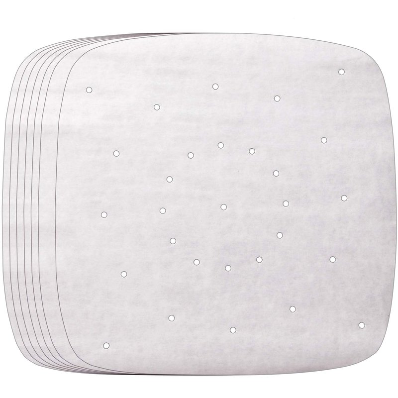 Features: Heat Resistance -- These air fryer parchment papers are and heat-resistant up to 450℉ (230°C). You can set your mind at rest to use them. They are absolutely quality square air fryer parchment liners. Multi Prepared Holes Design -- The arrangement and quantity of holes designed by us are scientific, which can make the heat circulation in the air fryer and steamers. They can make the food get the heat in all directions. Easy to clean -- These bamboo steamer liners are anti-sticky which protect your steamer and air fryer from food residue and make cleanup easily. Waterproof & Grease-Proof -- These air fryer parchments are waterproof and greaseproof, enhancing the taste. Safe Material -- Made from 100% food grade pulp,non toxic, hygienic. Specifications: -Material: 100% pulp -Diameter: 8.5 Inch/22 cm -Package List: 150 pieces WARNING: Make sure to place food or something on top of the liners to avoid having them fly away or get burned by the heating element!