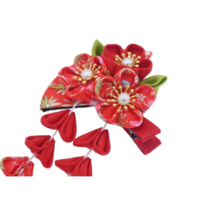Japanese Style Women Flower Hair Clip Tassel Hair Ornament, Kimono Decor Fabric Hanfu Hairpin Accessories For Christmas Party Costume Gift (Red)