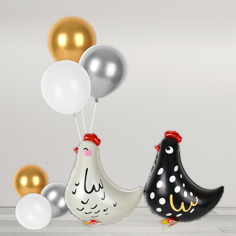 - PACKAGE INCLUDES: You will receive 12pcs chicken balloons in 2 styles and 18pcs regular 10” balloons in white, gold and silver, adequate to meet your decoration needs.