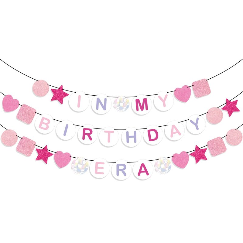 JarThenaAMCS In My Birthday Era Banner Pink Glitter Friendship Bracelet Banner Birth-Tay Era Tour Hanging Bunting Garland for Its A Girl Music Birthday Party Decor