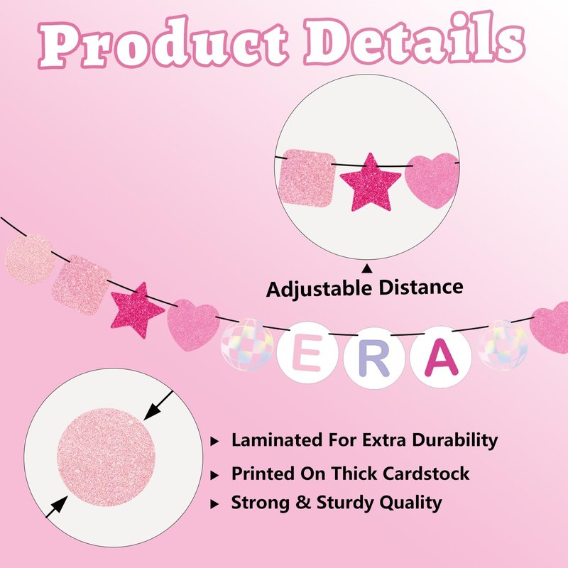 • BIRTHDAY THEME: Featuring the “In My Birthday Era” theme, the cards are mainly in purple and pink with glitter and iridescent look, quite distinctive and special for a glamorous birthday party backdrop