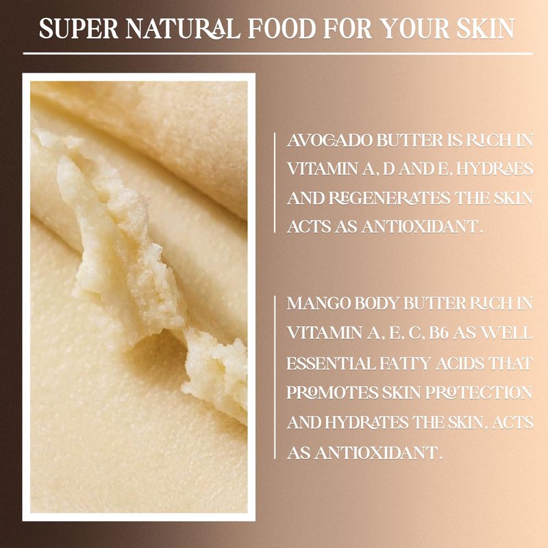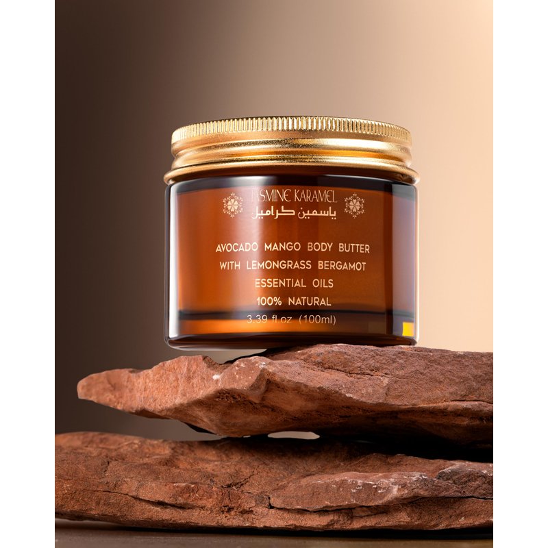 Jasmine Karamel Natural, Organic Mango, Avocado Body Butter, Premium Grade, Botanical Power, Vegan, Chemical Free, Deep Hydration, Non-Greasy, All Skin Types, Scented with Lemongrass & Bergamot Oils