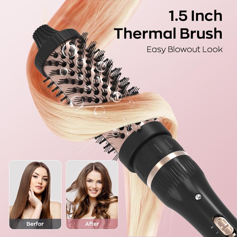 - 【2 In 1 Curl And Straighten , Create Blowout Styles】: The thermal brush is designed with longer, heat-sensitive bristles that effortlessly grab hair and wrap it around the barrel for smooth styling, perfect for natural curls, bangs curls and blowout styles. It can also be used as a straightener to straighten hair and smooth frizz. Note: This is not a hair dryer