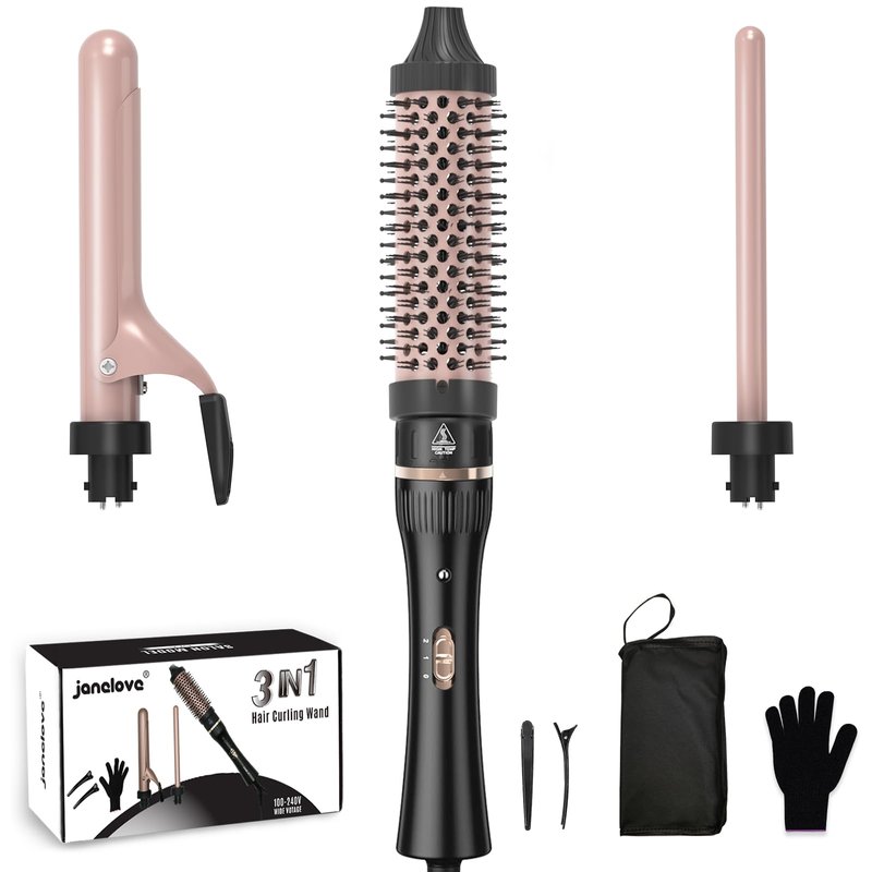 - 【One Set, Multiple Salon Styles】: The janelove 3-in-1 curling iron set sizes include a 0.51-inch small Curling wand to create tight curls, a 1-inch medium wand curler to create loose, voluminous curls, and a 1.5-inch curling brush to straighten your hair for blowout styles and natural curls. With just one set of tools, you can show your confidence and be your best self with a different look every day